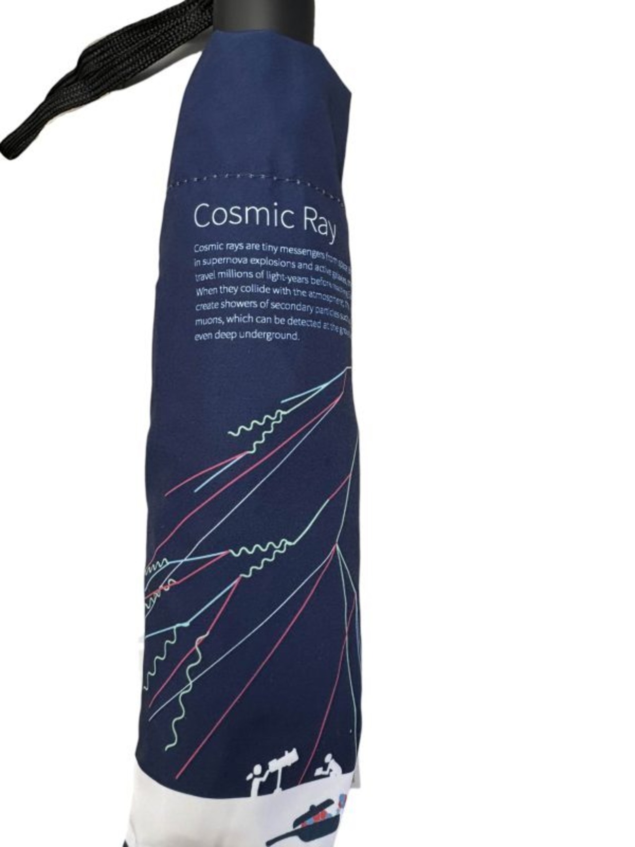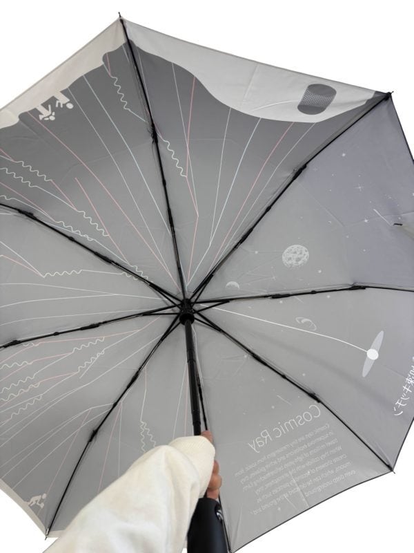 宇宙線の「空気シャワー」をフルサイズでデザインした「宇宙線傘」。